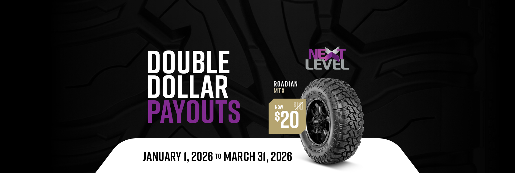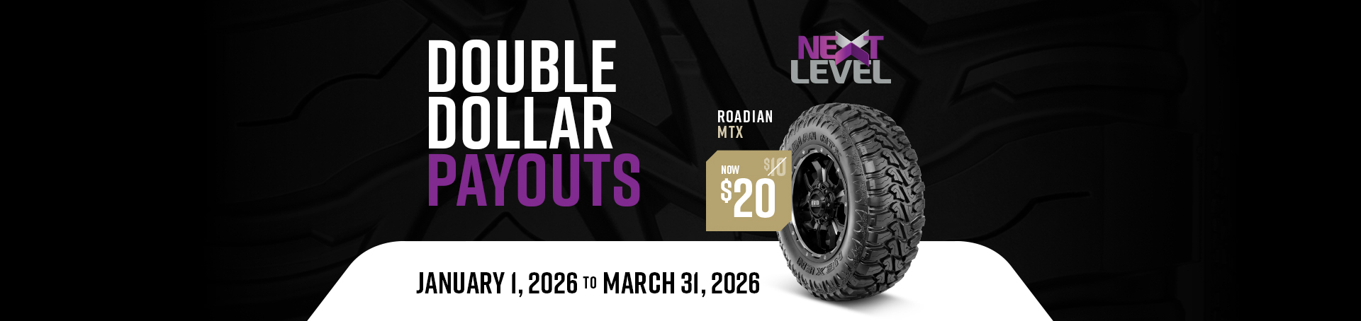 Start 2026 strong with Double Dollar Payouts during Q1. For a limited time, eligible Nexen tires earn double the payout, putting more cash back in your pocket with every sale. From winter favorites to top-performing all-season and off-road options, this is your chance to maximize earnings while stocking the tires your customers trust. Sell more. Earn more. Take your business to the Next Level all quarter long.